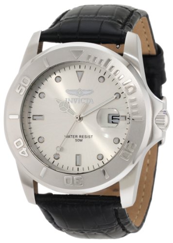 Buy Now! Invicta Men's 0008-BLK Pro Diver Silver Dial Black Leather Watch